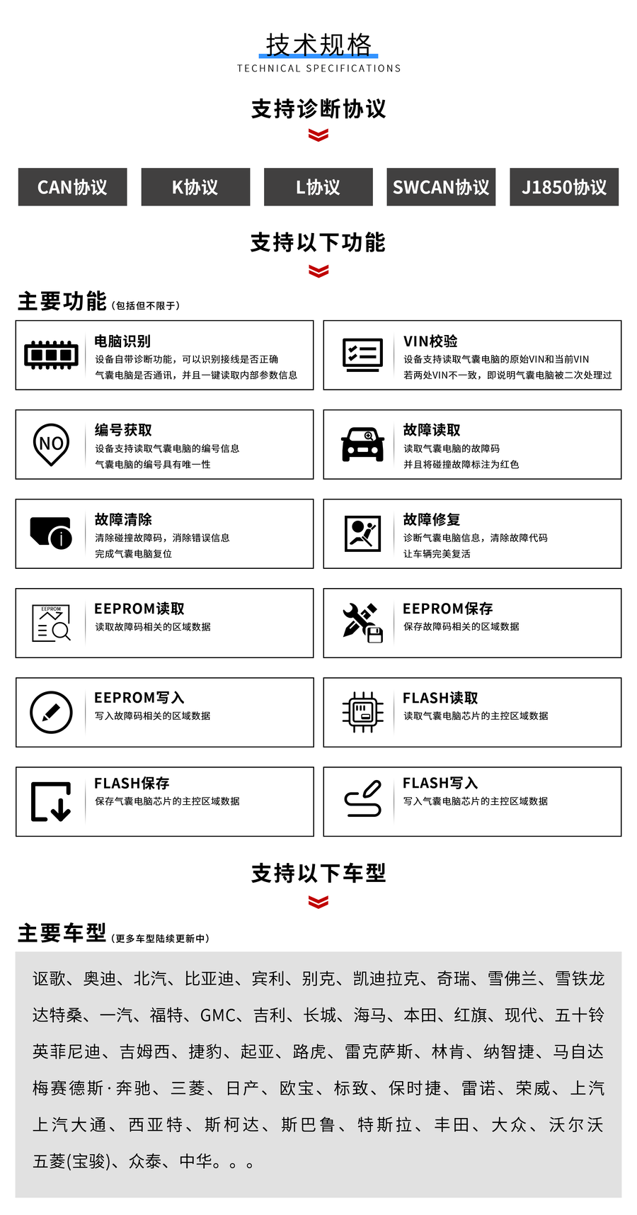 诊断功能新增以下型号: