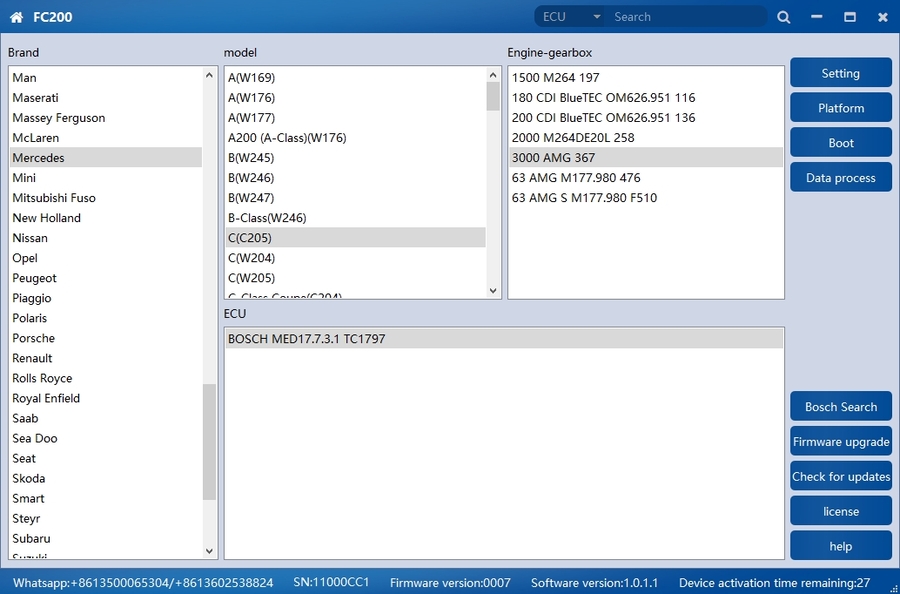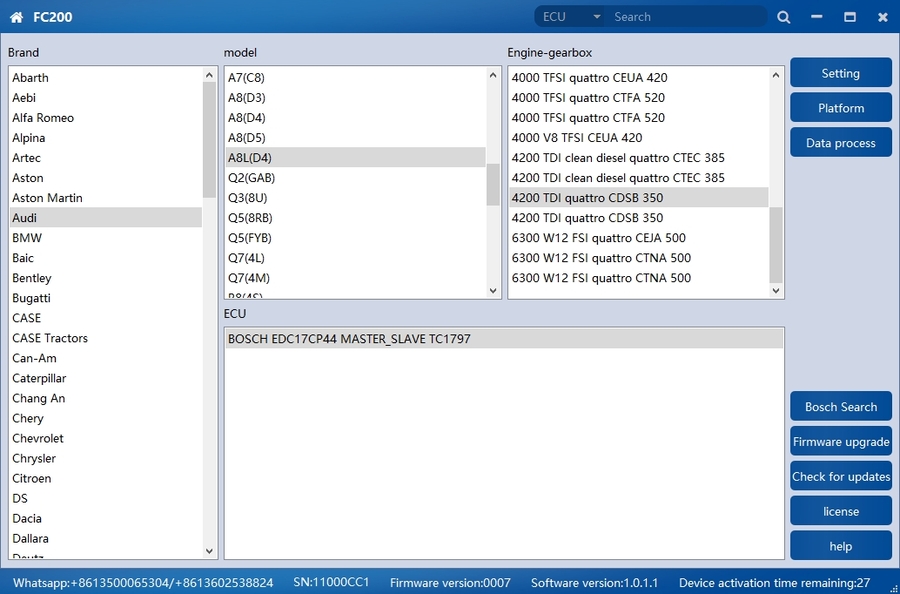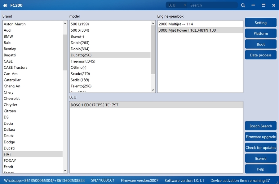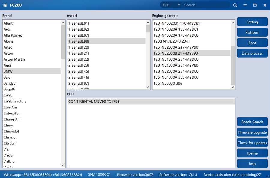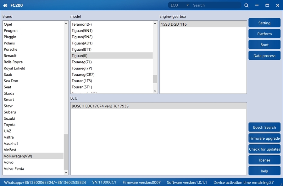 2.Added Bosch series engines: EDC17CP05 TC1797, EDC17C61, MED17.6.9, MG1CS019, MD1CS012, EDC17CV45, MG1CP002, ME17.U.6, MEV17.4.2 TC1766, MEV17.4.2 TC1767