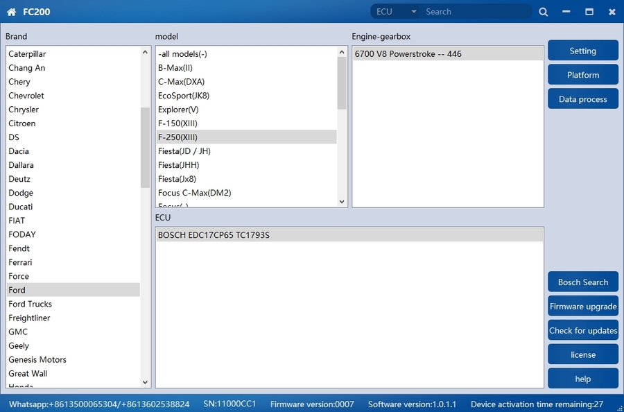 6.Added BOSCH platform engine: EDC17CV53